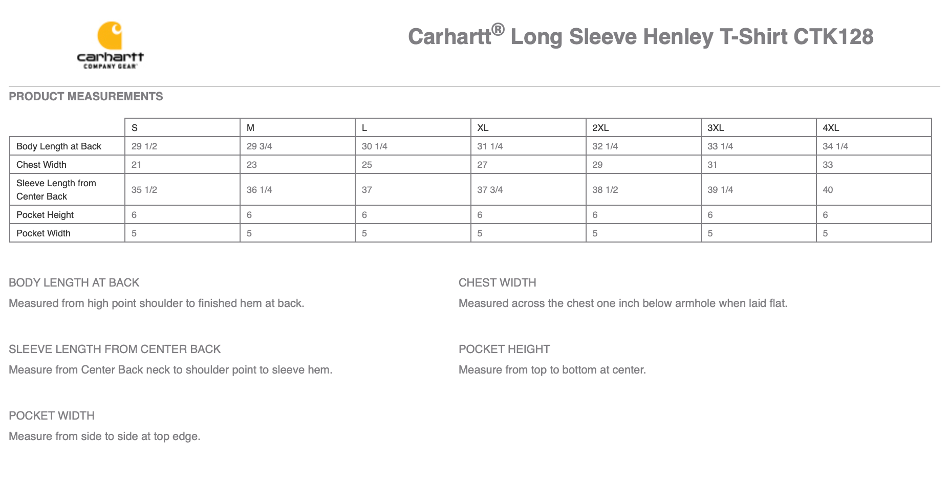 - Carhartt label sewn on left chest pocket
